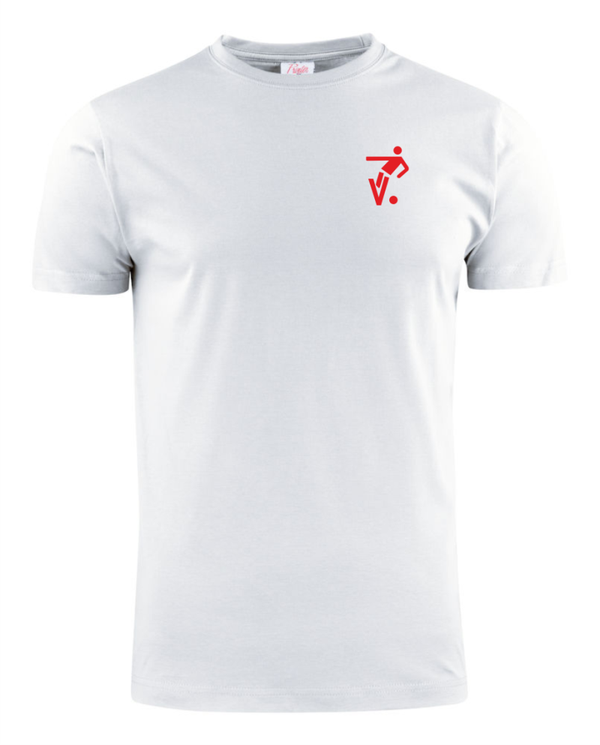 Moderne, aansluitende t-shirt met versterkte schoudernaden en dubbelgestikte halsopening. Elastaan in boord. Geribde nek in vier lagen. Oeko-tex.