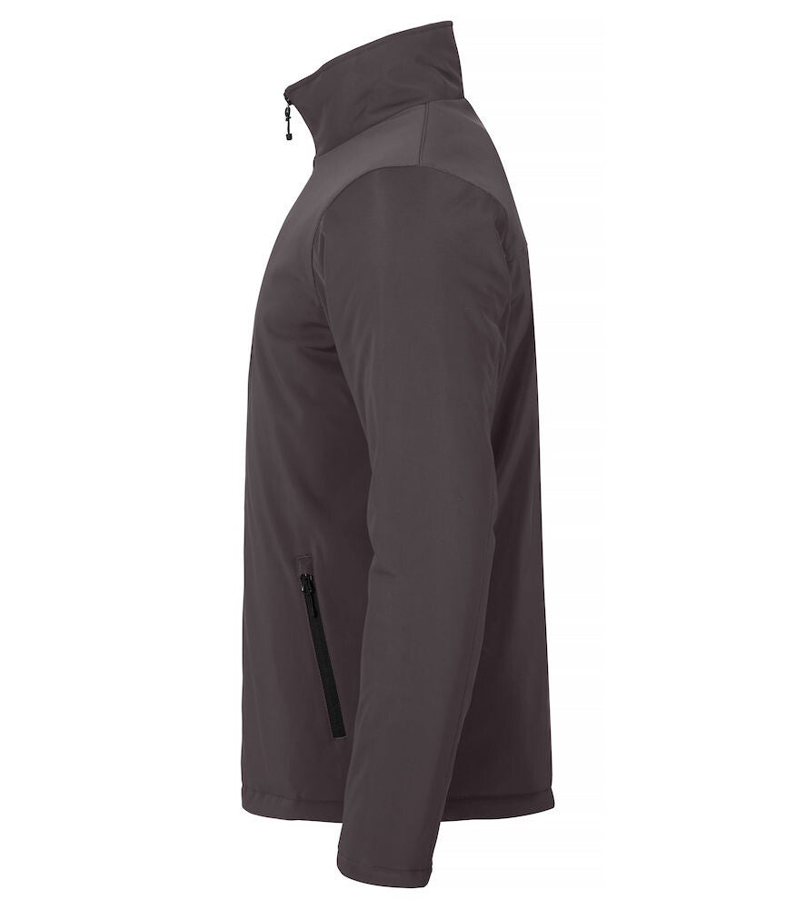 Een modern gesneden, gewatteerd softshell jack. Dit jack is voorzien van drie buitenzakken met omgekeerde SBS-ritsen en één binnenzak. Het heeft een zwarte voering en is gemakkelijk te veredelen dankzij de borduurrits aan de binnenzijde