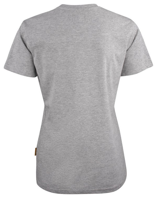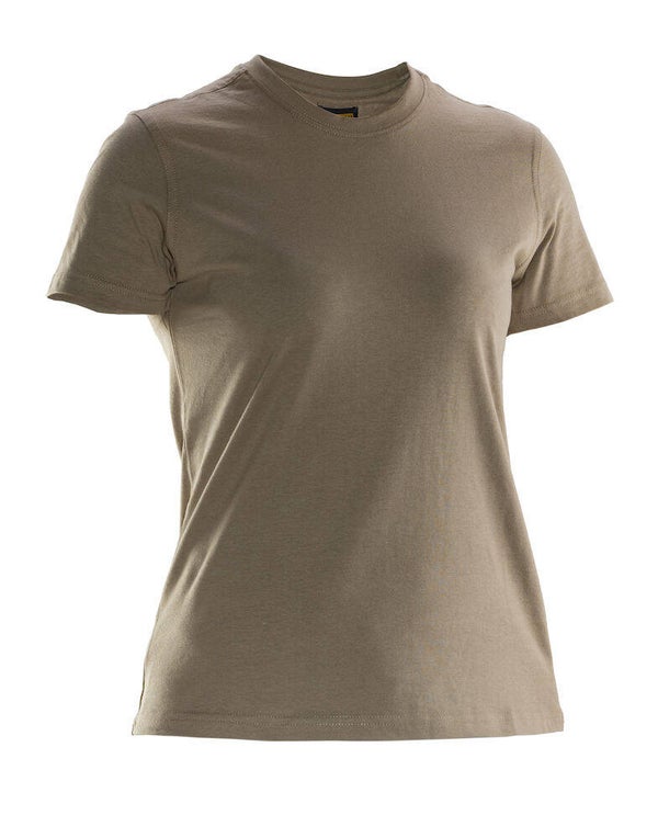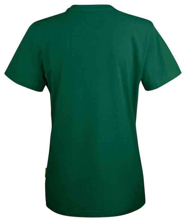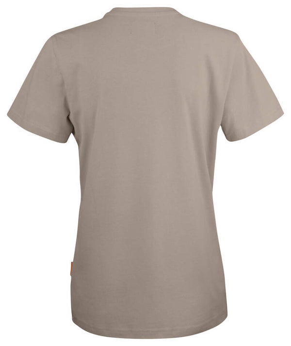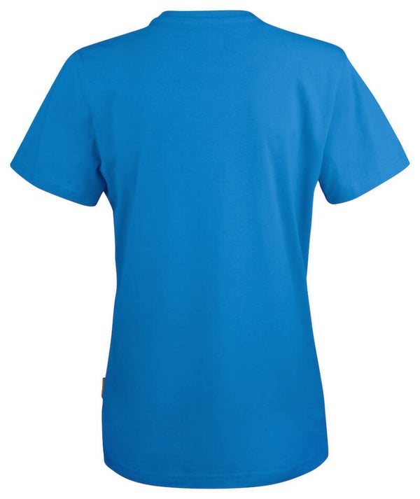 Praktisch basis dames T-shirt van katoen single jersey met een professionele en eigentijdse pasvorm. De verstevigde naden bij de schouders en dubbel gestikte naden rond de nek zorgen voor een betere slijtvastheid.