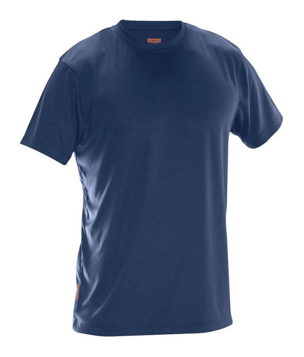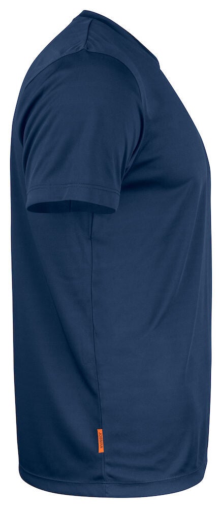 Praktisch basis T-shirt gemaakt van spun dye polyester, een milieuvriendelijke kleurmethode waarbij minder water, stroom en chemicaliën worden verbruikt. Daarnaast zorgt de spun dye polyester ervoor dat vocht snel van het lichaam wordt afgevoerd voor een aangenaam droog gevoel gedurende de dag.